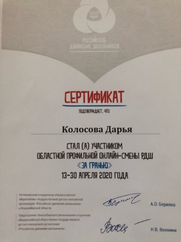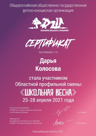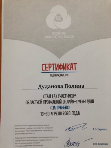 В этой газете они публикуют события, происходящие в нашей школе. Также в школе есть активисты РДШ: Дуданова Полина (Лидер РДШ), Колосова Дарья (Военно- патриотическое направление), Мордежова Наталья (Информационно- медийное направление), Бочкарева Екатерина ( Личностное развите), Федосеев Никита ( Гражданское направление). Они ходят на различные сборы РДШ, являются активистами.