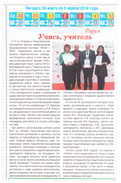 Педагоги школы участвовали в III Межрайонном педагогическом форуме «Модернизация воспитательного процесса: инновации и опыт». Кл. час «Этикет – ключ, который открывает все двери». А Наталья Филипповна Колосова 1 место в межрайонном конкурсе «Фестиваль открытых классных часов». Кл.час «Профессии людей». Получили Сертификаты за доклады на форуме Королёва Ольга Константиновна, Терехова Тамара Алексеевна. Татьяна Григорьевна Конова представила собственную воспитательную систему, которая прошла апробацию, получила Сертификат.