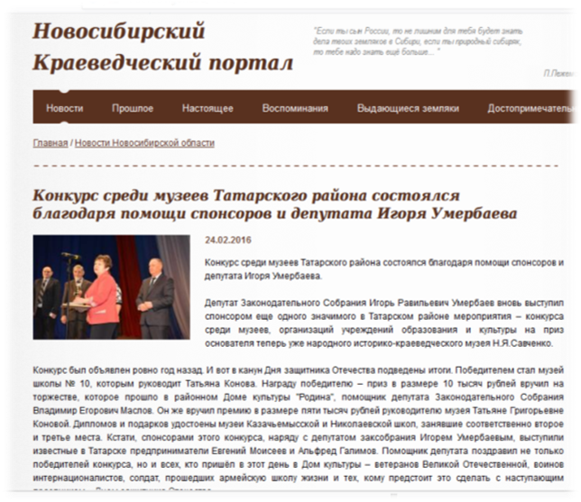 Также он Победитель районного конкурса обучающихся образовательных организаций Татарского района «Ученик года - 2018», Лауреат премии Губернатора Новосибирской области для поддержки одарённых детей и молодёжи, 2018г.